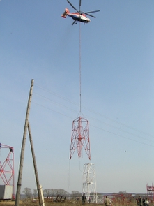 Потом вертолет  садится для дозаправки и вновь поднимается в воздух монтировать  следующую секцию. Кстати, конструкции уже разложены в отдалении в строгом соответствии с порядком монтажа — дело в том, что вертолет с таким грузом не может совершать лишних движений в воздухе, поэтому все разложено именно так, как будет смонтировано - надо только поднять в воздух и по прямой донести до места сборки на определенной высоте. На монтаж каждой секции отводится всего 6-8 минут, и действительно, все происходит очень быстро, четко и слаженно. Установка одной такой башни занимает не более часа.