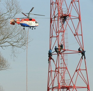 Монтаж осуществляется следующим образом: первую секцию высотой в 20 метров ставят тяжелым автомобильным краном, а остальные — с помощью винтокрылой машины. «Боевые силы» распределены следующим образом — экипаж вертолета, состоящий из трех человек, два техника, бригада монтажников из 7 человек (они будут осуществлять монтаж башен), а также заправщик. Поскольку установка секции – дело ювелирной точности, вертолет взлетает с точно рассчитанным на монтаж одной секции количеством топлива.